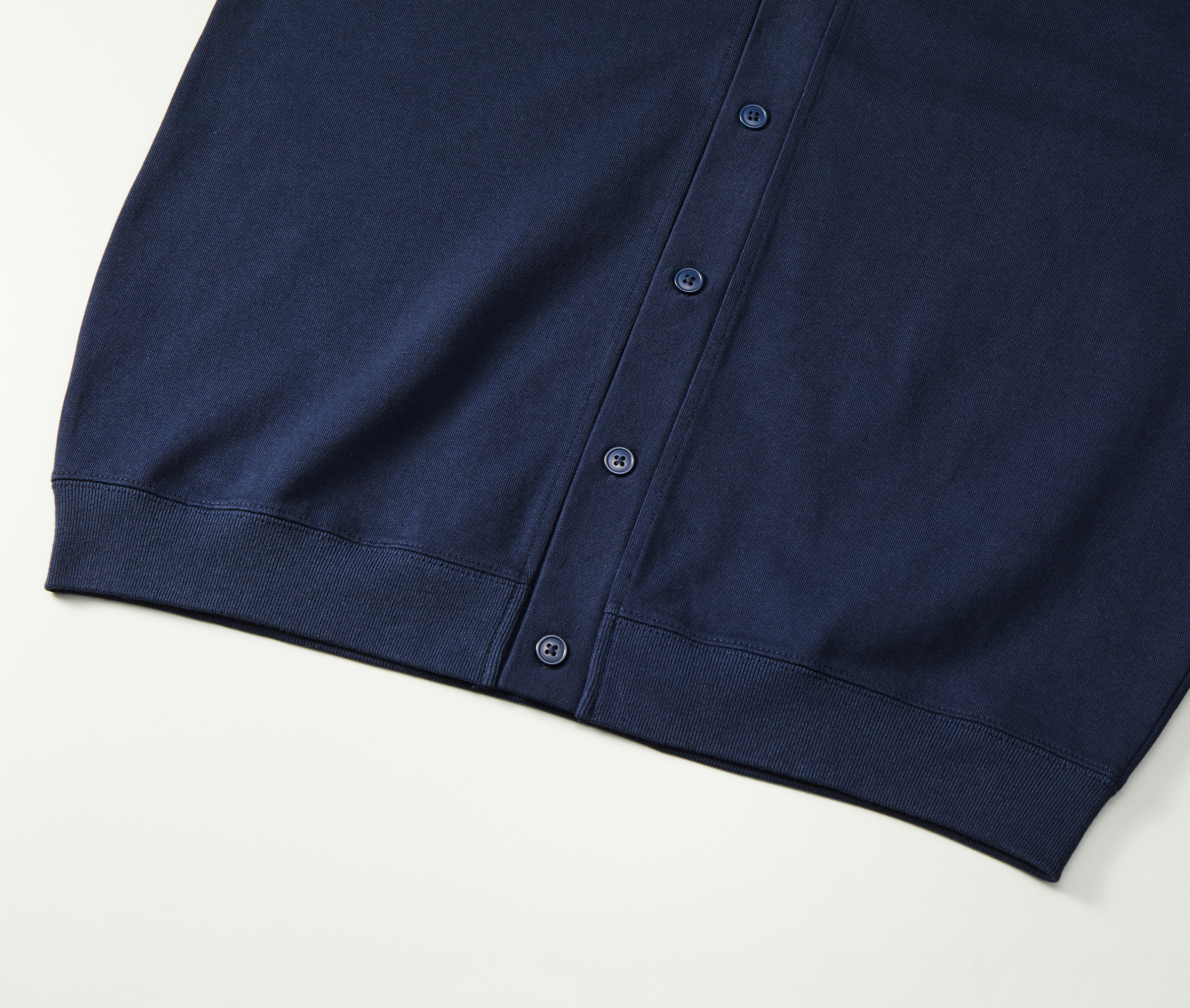 綿の天竺素材で作られたカーディガンは、ルーズめのシルエットで適度な抜け感を演出する一着。 お手入れも簡単で、街着はもちろん、リラックスシーンにも活躍することうけあいです。 あえてポケットは付けず、表に見えるステッチを極力排したミニマルなデザインのため、どんなスタイルにもなじみます。